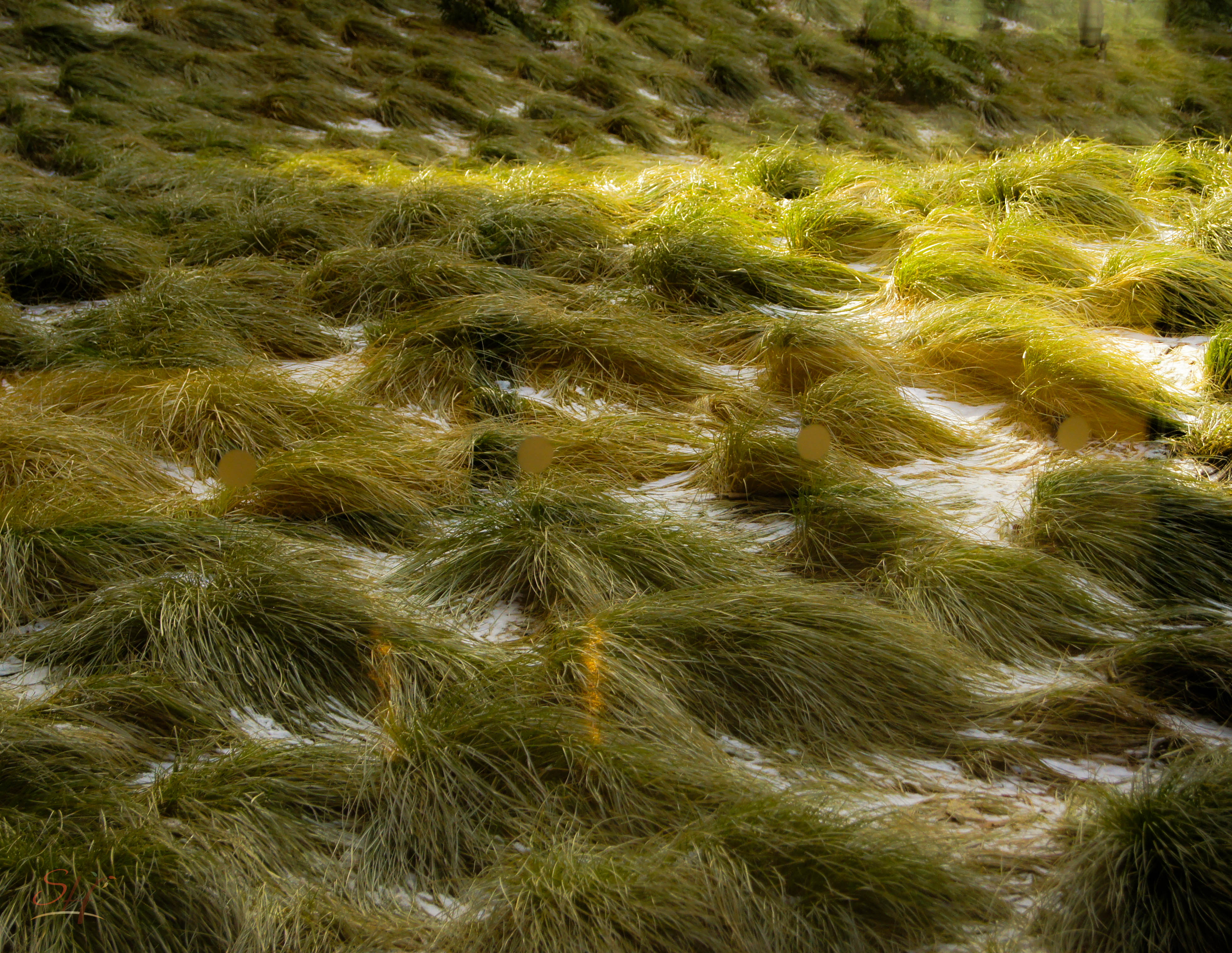 Flat grass = wind + snow?