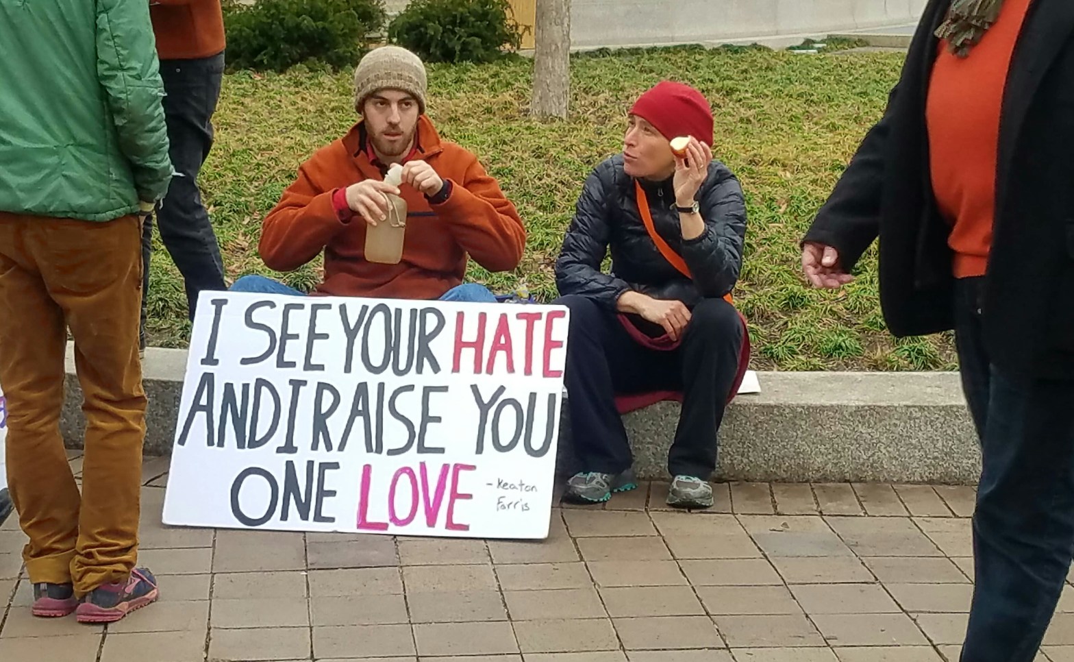 So, I stood there listening to protesters shout at the evangelists, “God Loves Me! God is about love!” To which the evangelist responded with a verse about love. Then there were those protesters who were mocking and cursing the evangelists for which they received further judgement for the evilness of their hearts.