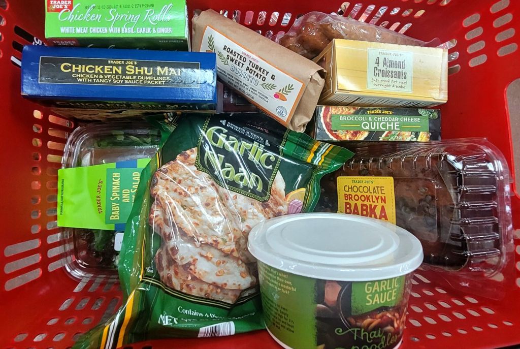 No one told me Trader Joe’s is like a microcosm of the New York City food scene. Walking through, I felt like I was home. Before I knew it, I was grabbing food for several days of meals. A baby spinach harvest salad with bleu cheese, cranberries, and candied pecans landed in the basket first.