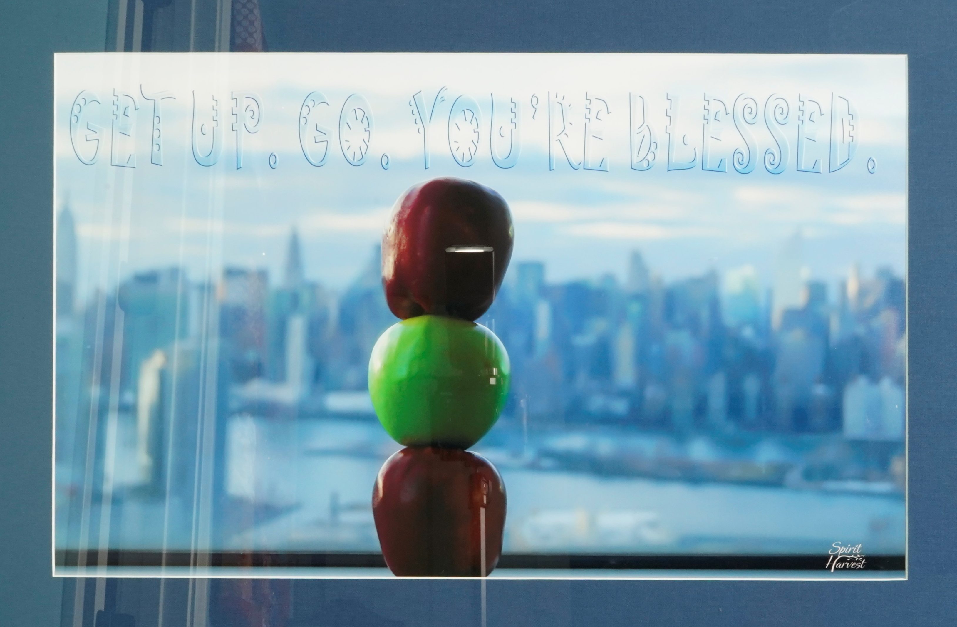 Manhattan skyline with big apples in the foreground. This print is available in several sizes in my store. Check it out!