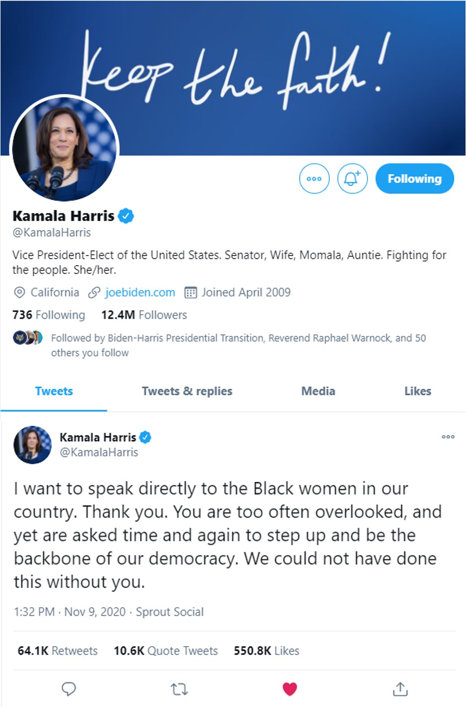 Kamala Harris Tweet to Black Women 11092020 0