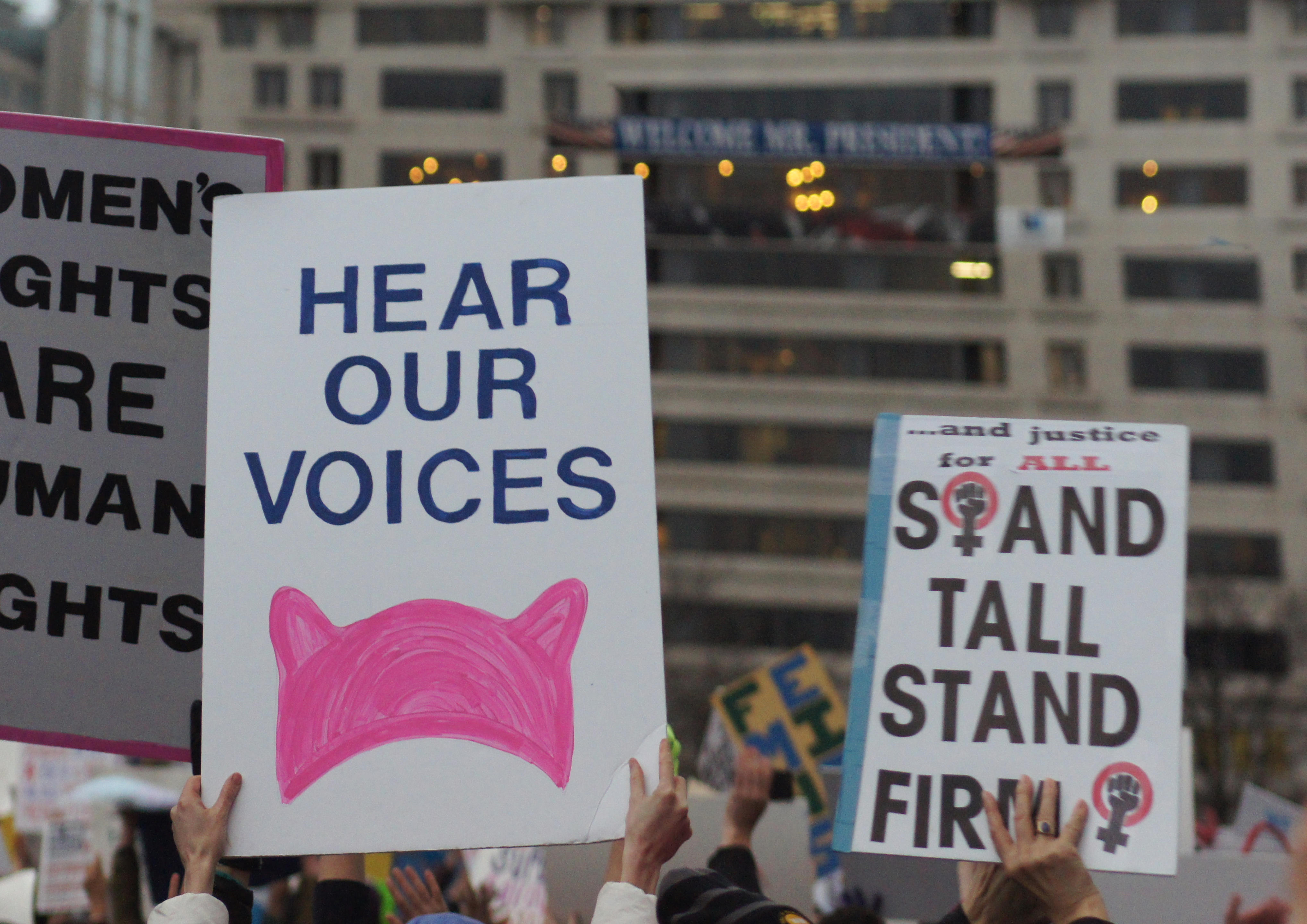Previous Image Next Image Hear Our Voices sign Women’s March, Washington, DC, 01/21/2017, photo by LaShawnda Jones